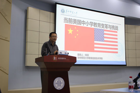 在题为《当前美国中小学教育变革与挑战》的报告中,杨浩教授从学生和教师的培养等方面介绍了美国的教改项目,谈到了其存在的争议性,指出了美国新入职教师的主要问题,同时也谈到美国教改对我国未来教育的启示。