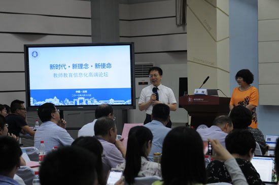 此次高端论坛分为两个阶段,第一阶段是学校教师教育混合式教学课程建设汇报,第二阶段是以“新时代·新理念·新使命”为主题的教师教育信息化学术交流。